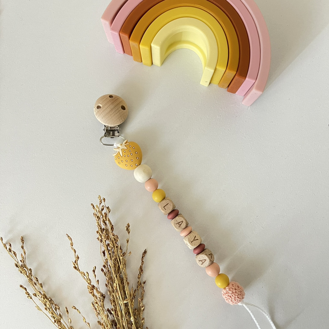 Parce que bébé mérite le meilleur, notre attache-tétine Laya est l’accessoire idéal pour garder sa tétine à portée de main tout en ajoutant une touche fruitée et élégante à son quotidien.