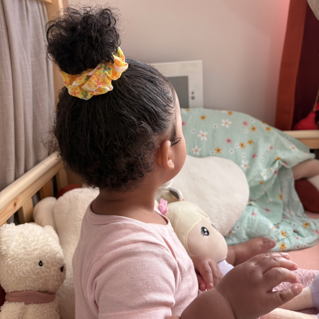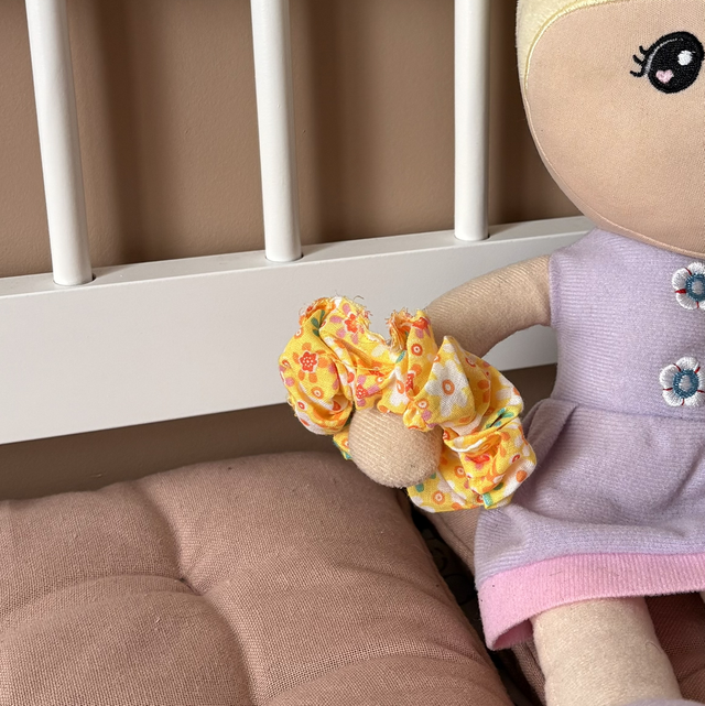 Chouchou pour enfant cousu main, décoré d’un motif fleuri e coloré. Doux et confortable, il ajoute une touche fleurie et lumineuse aux coiffures de vos petits bouts.