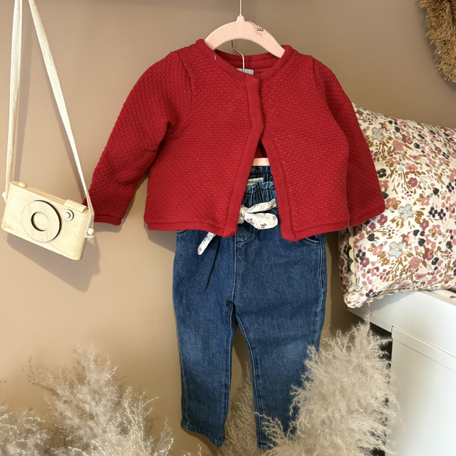 Apportez une touche de style et de confort à la garde-robe de votre bébé avec ce jean pratique et tendance, doté d'une petite ceinture en tissu.